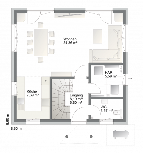 8,6 ⨯ 8,6 m